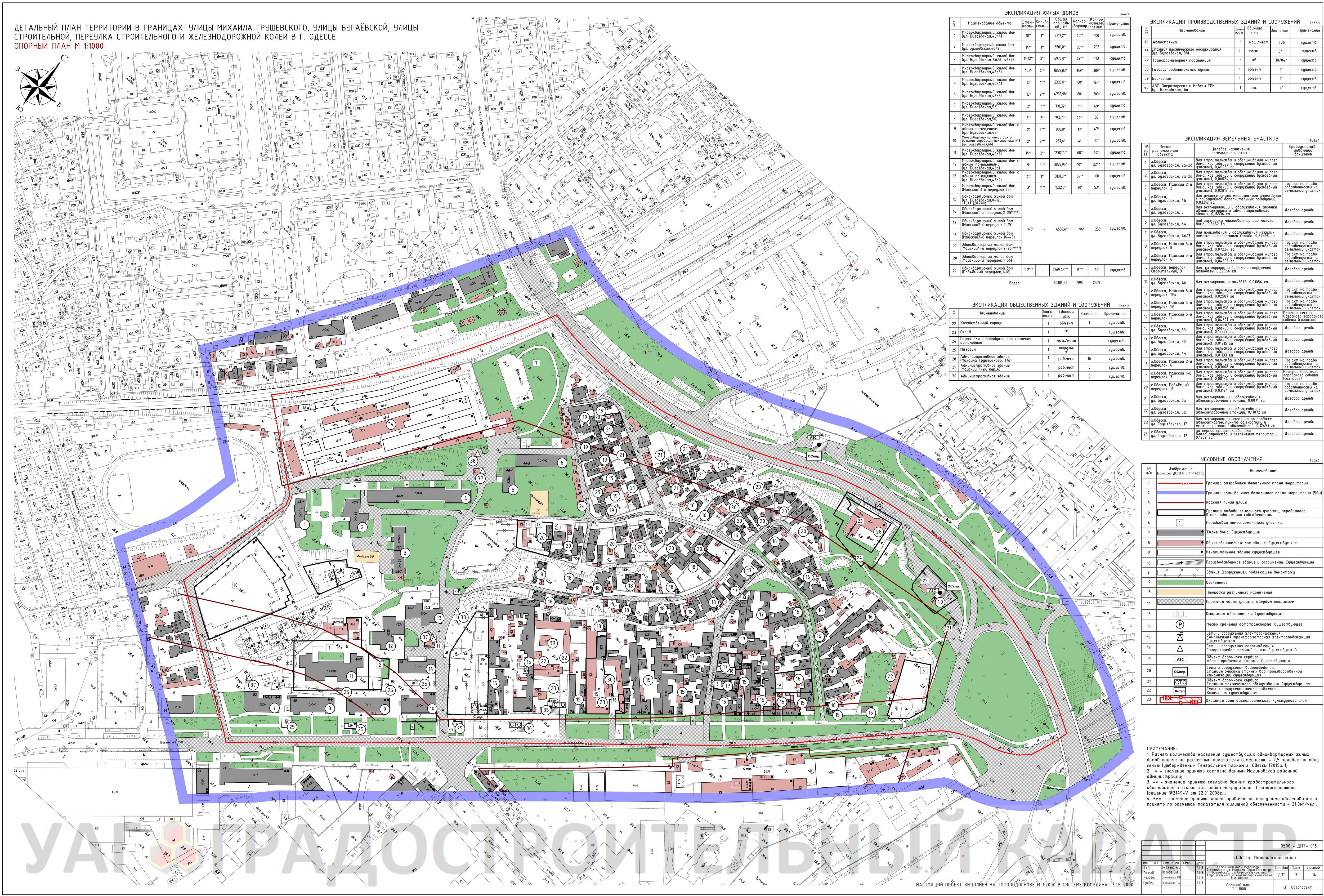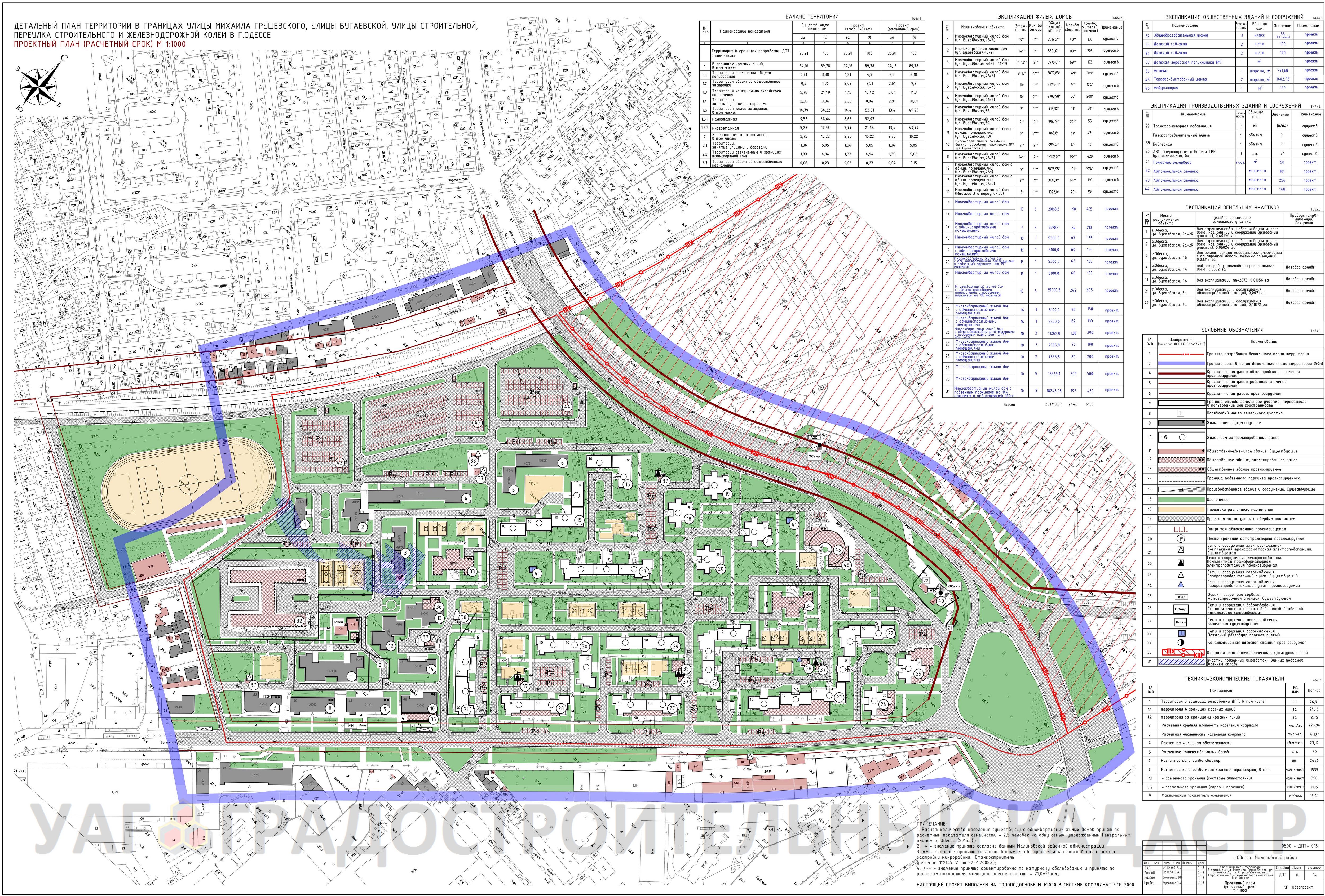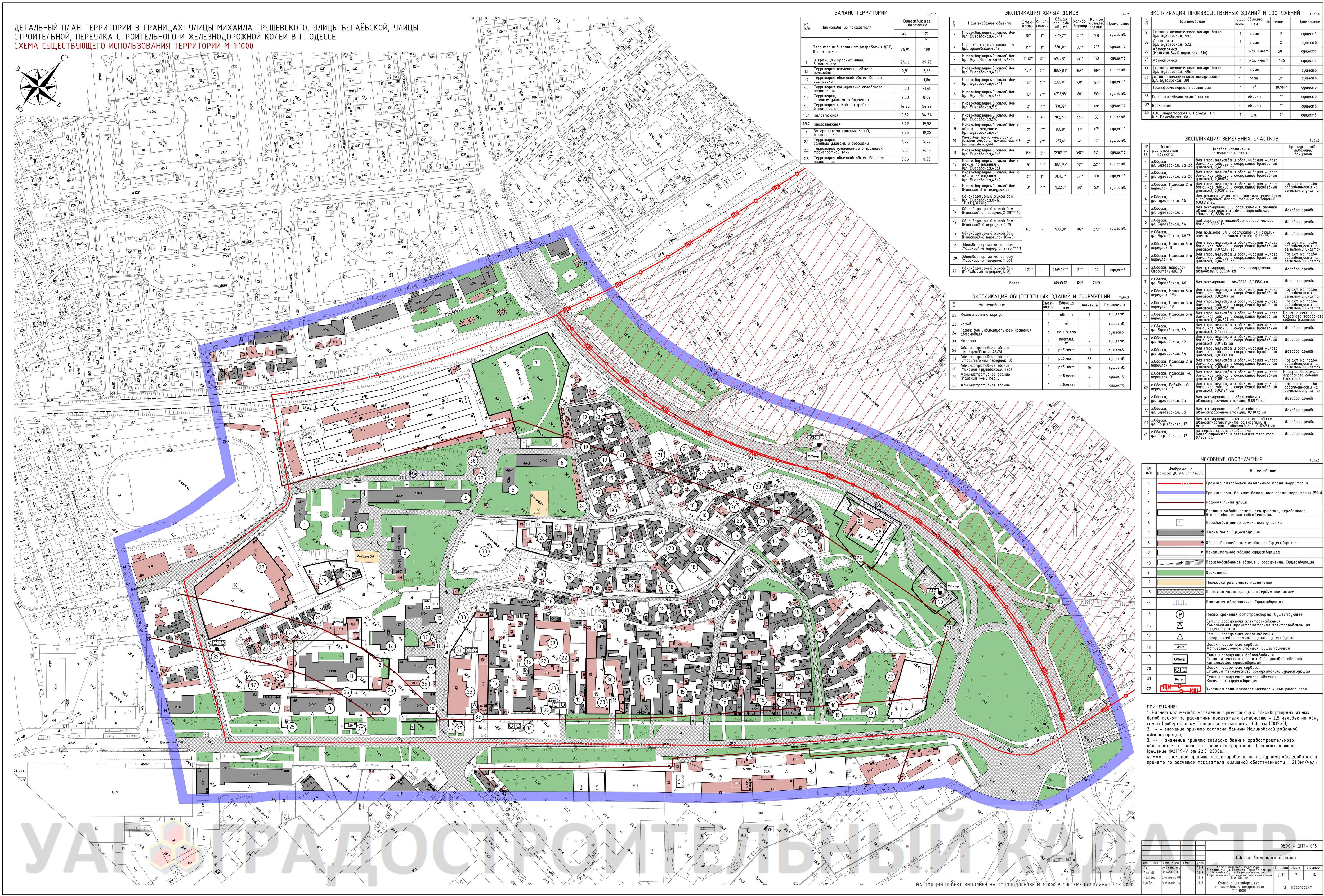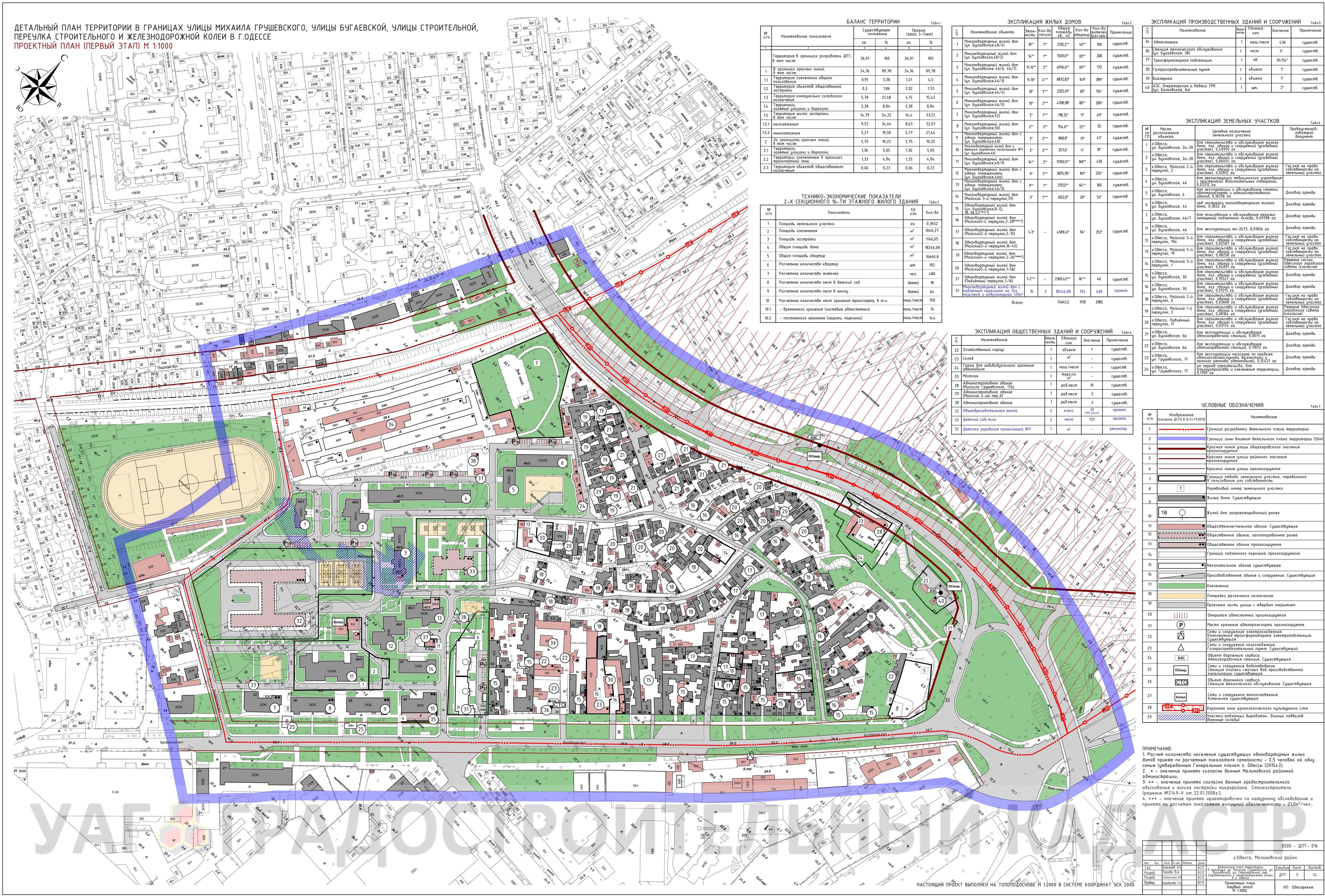 Детальный план территории в границах улицы Михаила Грушевского, улицы Бугаевской, улицы Строительной, переулка Строительного и железнодорожного пути в г. Одессе разработан на основании решения Одесского городского совета № 1092-VII от 21.09.2016г. и в соответствии с заданием на проектирование, утвержденным заказчиком и согласованным инвестором.