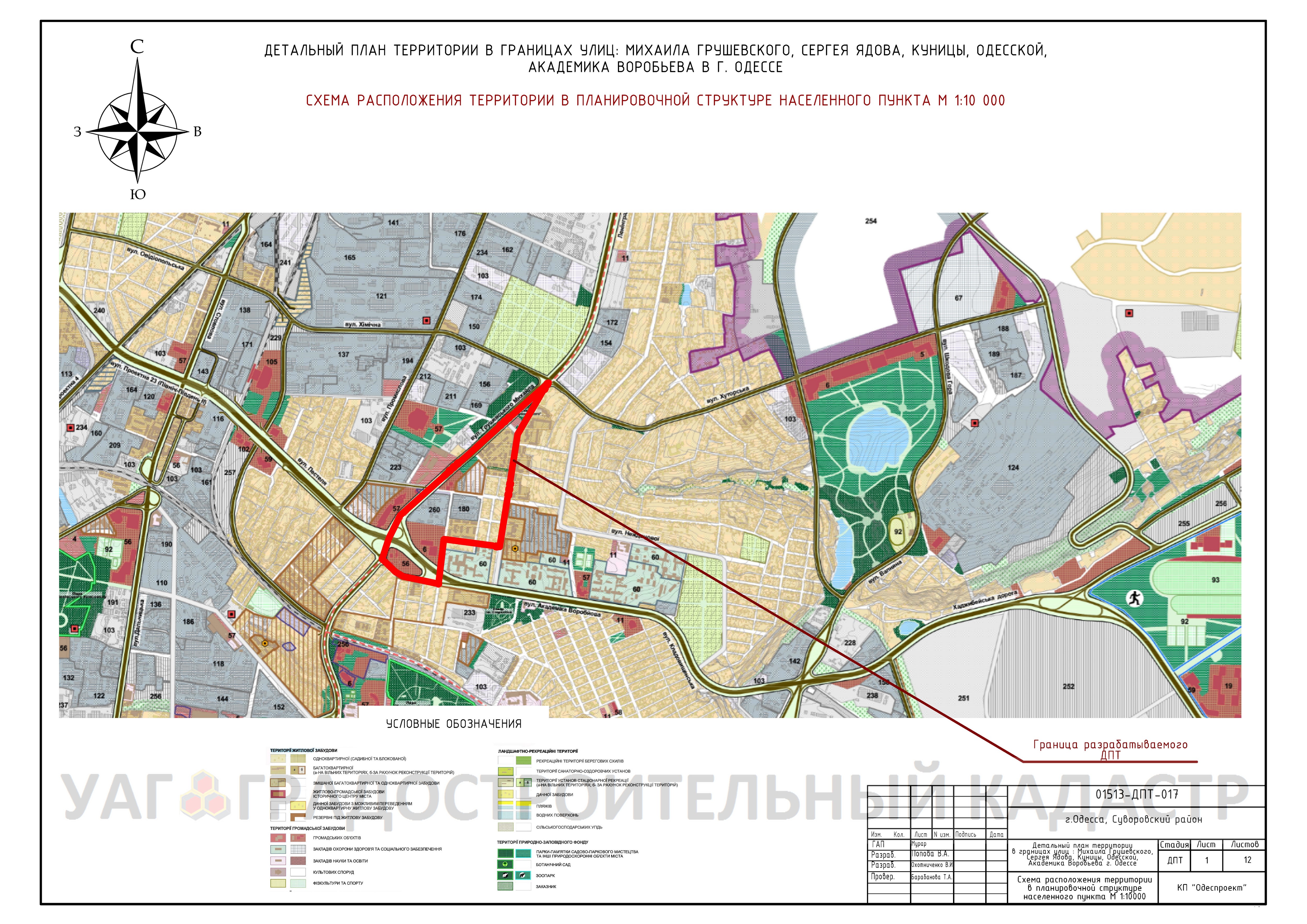 Детальный план территории в границах улиц Михаила Грушевского, Сергея Ядова, Куницы, Одесской и Академика Воробьева в г. Одессе разработан на основании решения Одесского городского совета №1946-VІІ от 26.04.2017 г.