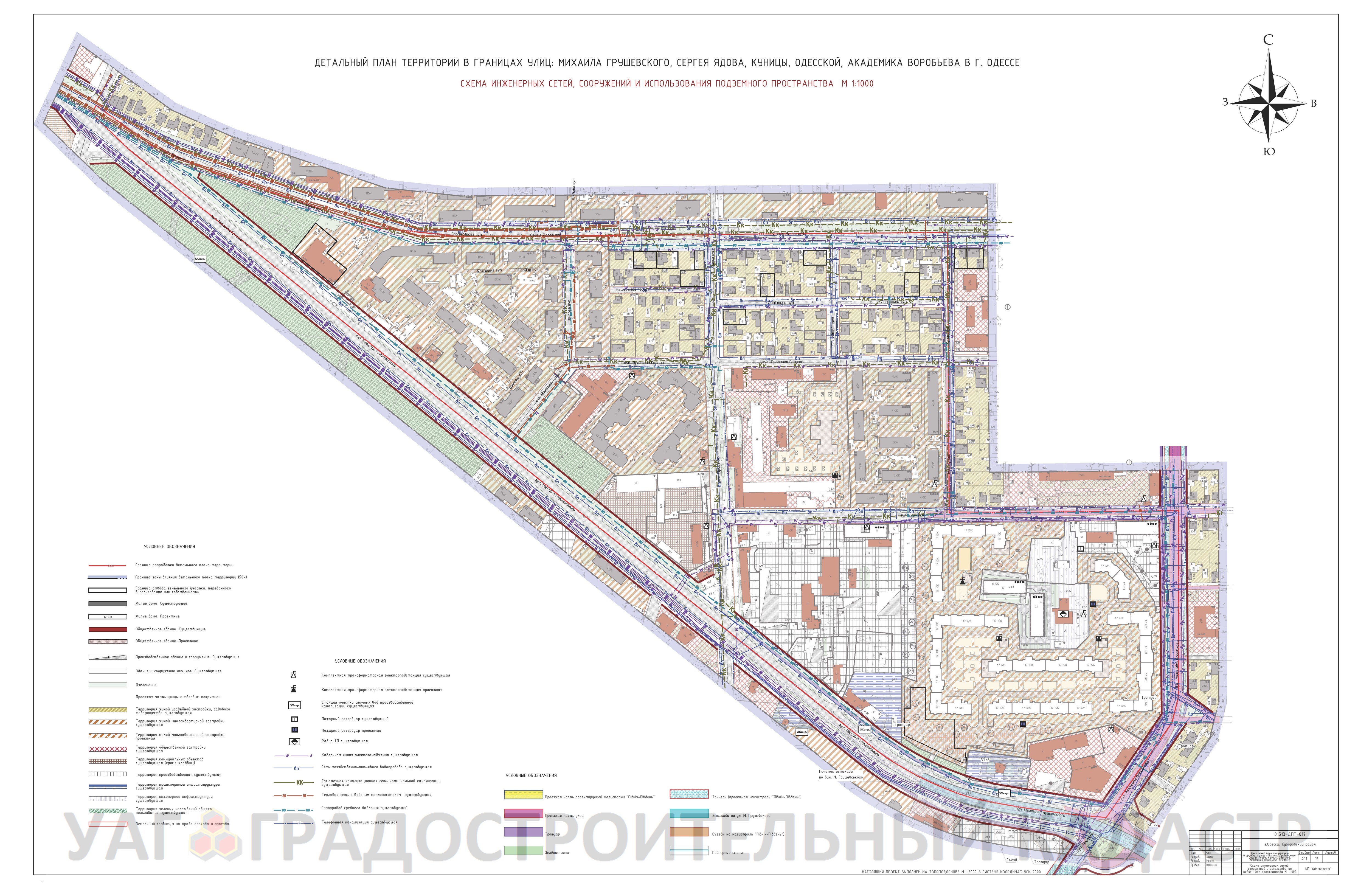 В составе графических материалов детального плана территории разработана концепция развития подземного пространства улицы Академика Воробьева в рамках выполнения проектных решений генерального плана г. Одессы на расчетный срок в части реализации транспортной сети (объездной дороги «Север-Юг»).