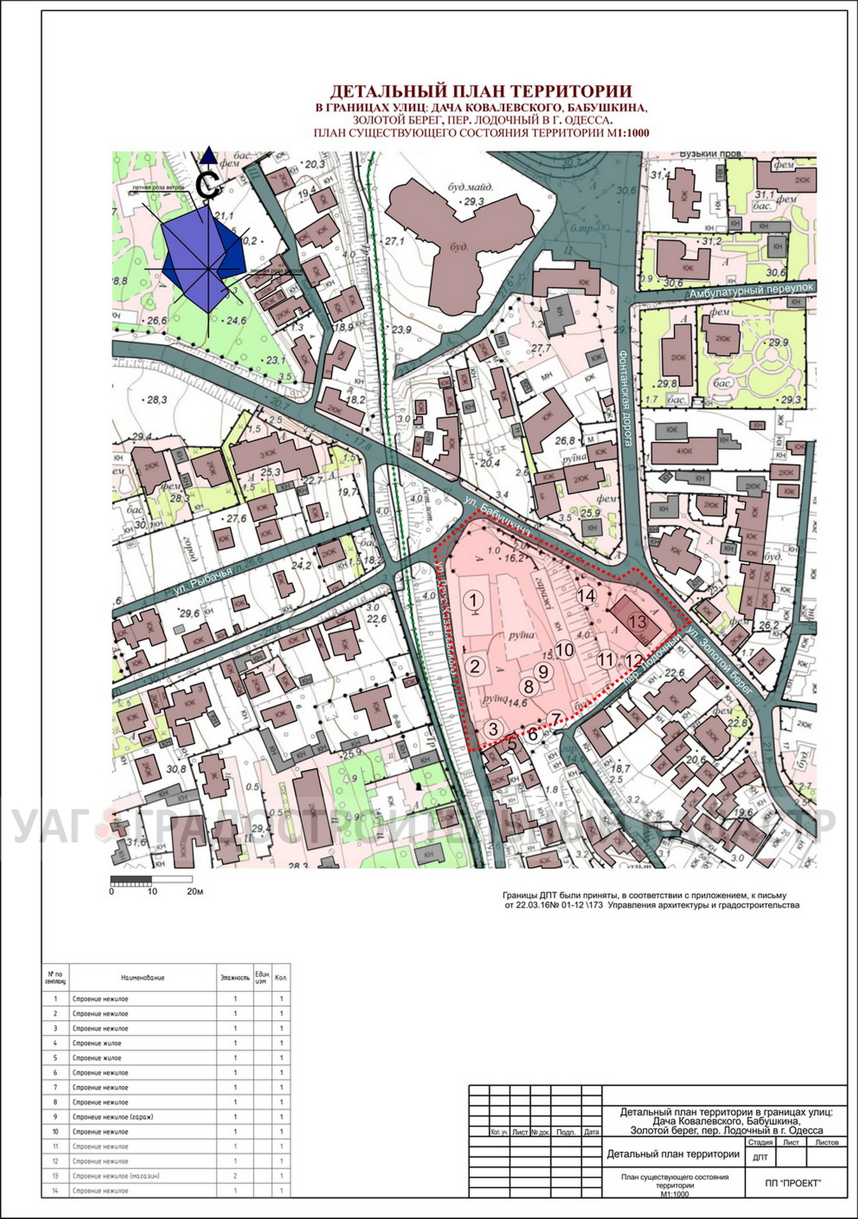 Детальный план территории в границах улиц Дача Ковалевского, Бабушкина, Золотой берег, пер. Лодочный в г. Одессе разработан на основании решения Одесского городского совета №271-VII от 03.02.2016р. «О разработке детального плана территории в границах Дача Ковалевского, Бабушкина, Золотой берег, пер. Лодочный в г. Одессе»