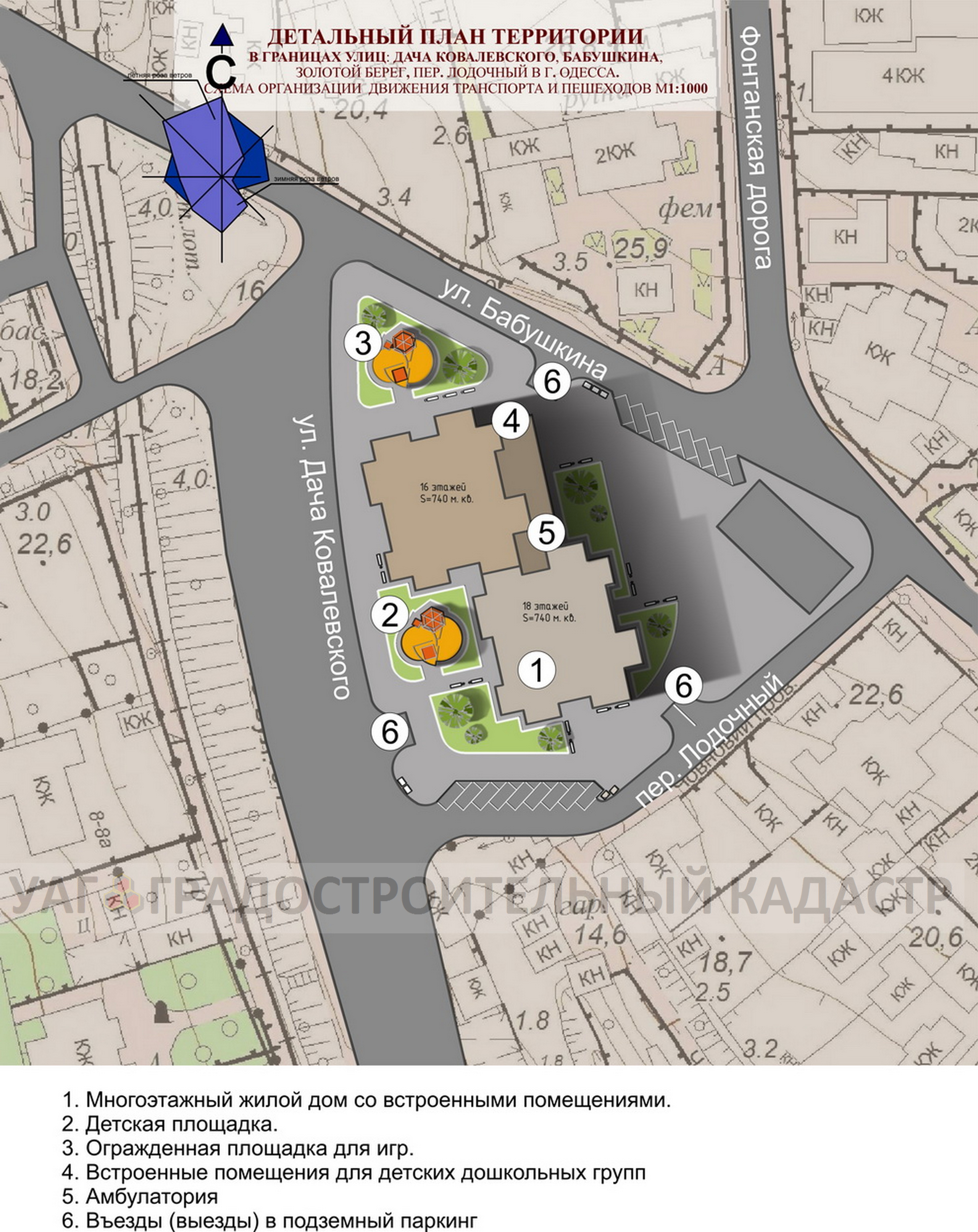 При разработке детального плана территории в границах улиц Дача Ковалевского, Бабушкина, Золотой берег, пер. Лодочный в г. Одессе, использованы технико-экономическими показателями проектов-аналогов, которые не противоречат решениям генерального плана и соответствуют государственным строительным нормам.