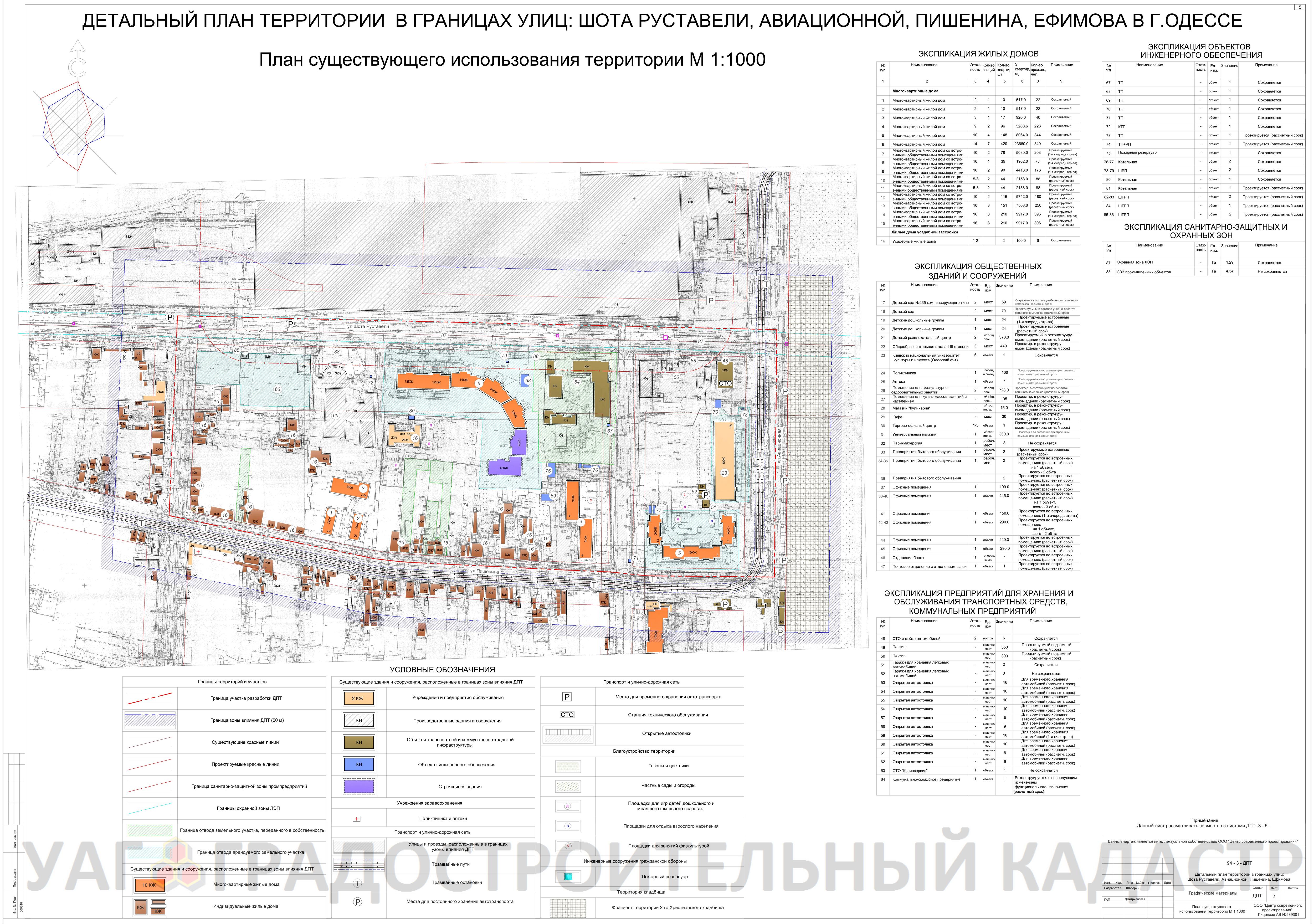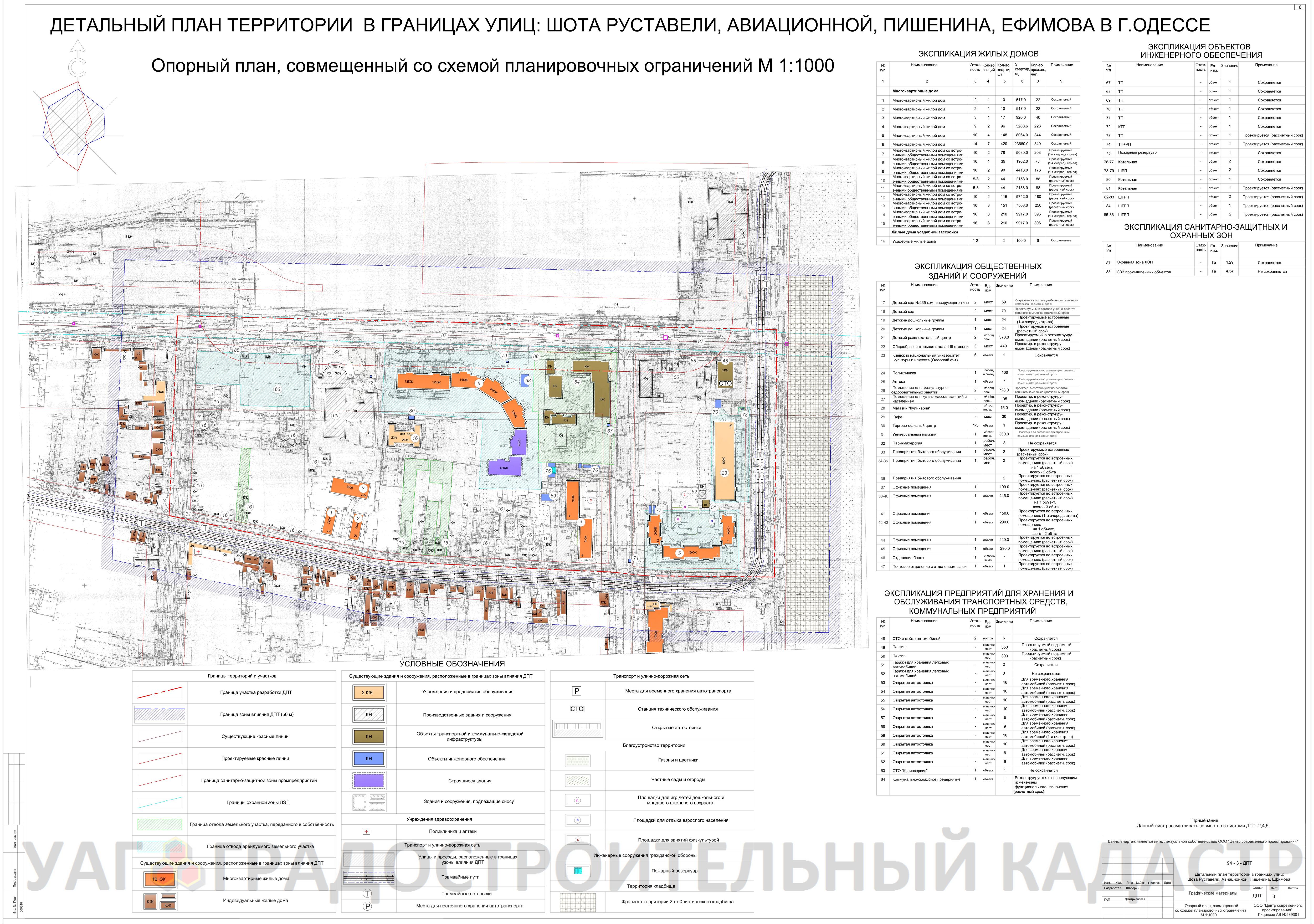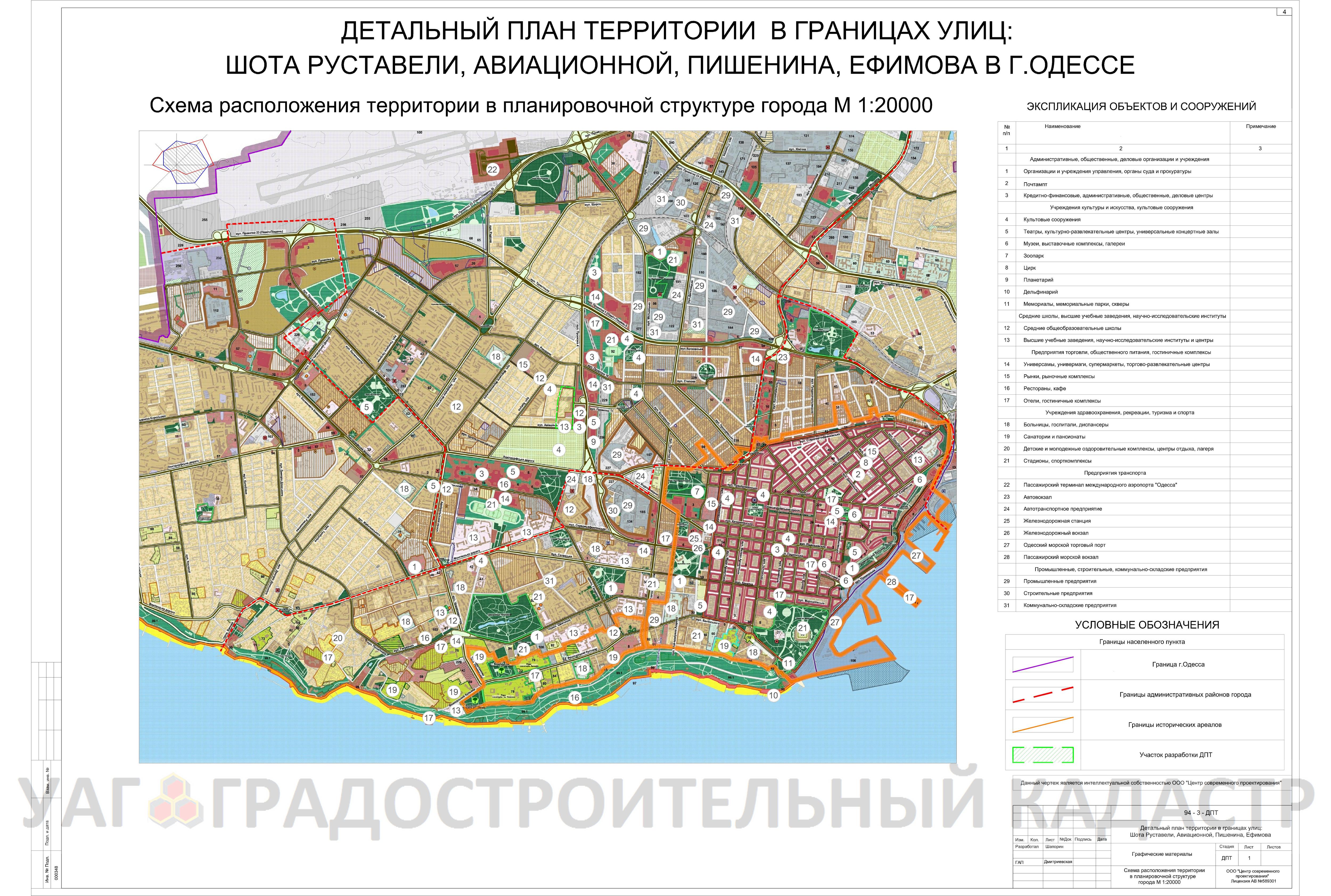 - детализации и уточнения в более крупном масштабе положений генерального плана г. Одессы, планировочной схемы территории в части определения функционального назначения территорий, зданий и сооружений на расчётный срок;