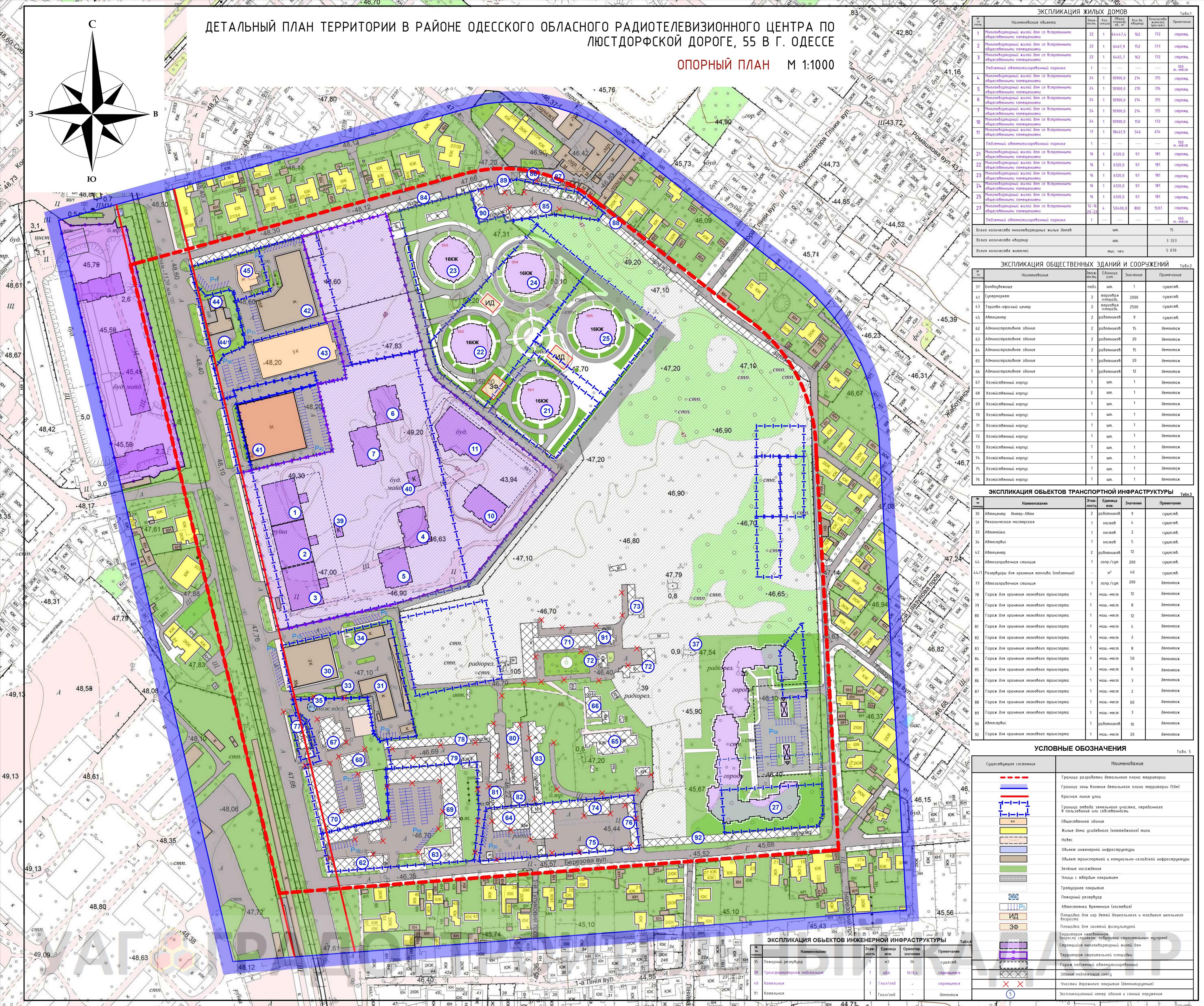 При разработке настоящего ДПТ учтены материалы детального плана территории в районе Одесского областного радиотелевизионного передающего центра (ООРПТЦ) по Люстдорфской дороге, 55, разработанного ГП «Украинский государственный научно-исследовательский институт проектирования городов «Гипроград» им. Ю.М.Белоконя» в 2013 г.
