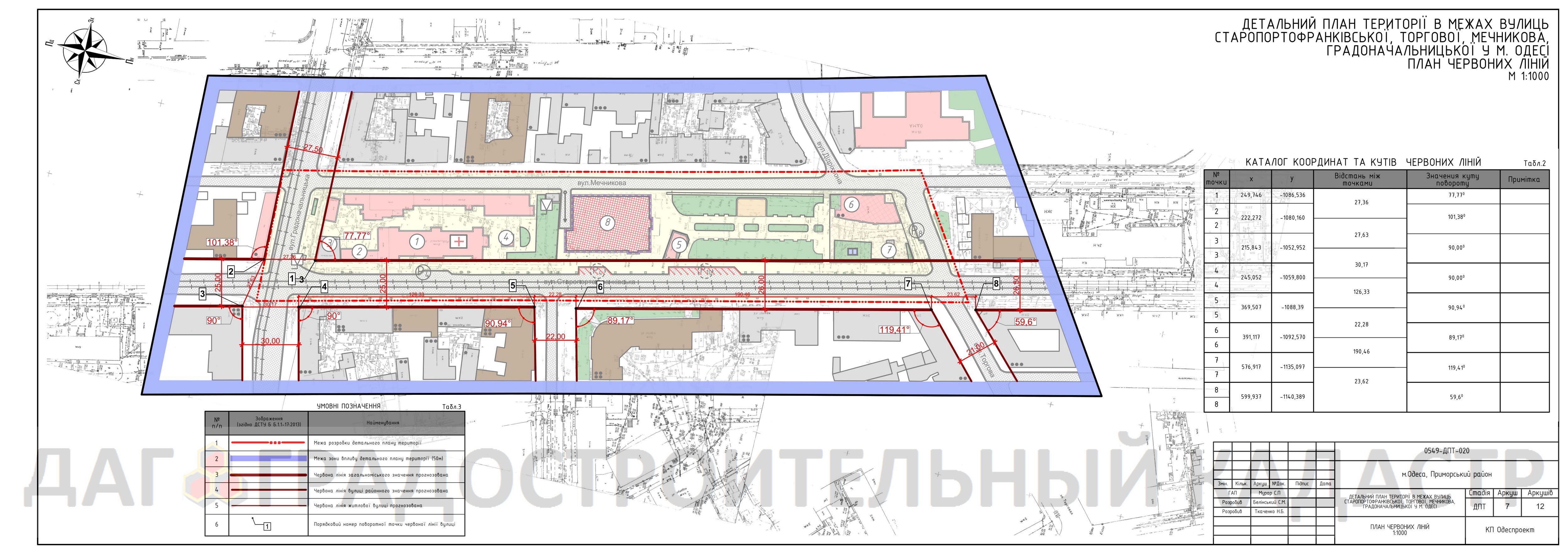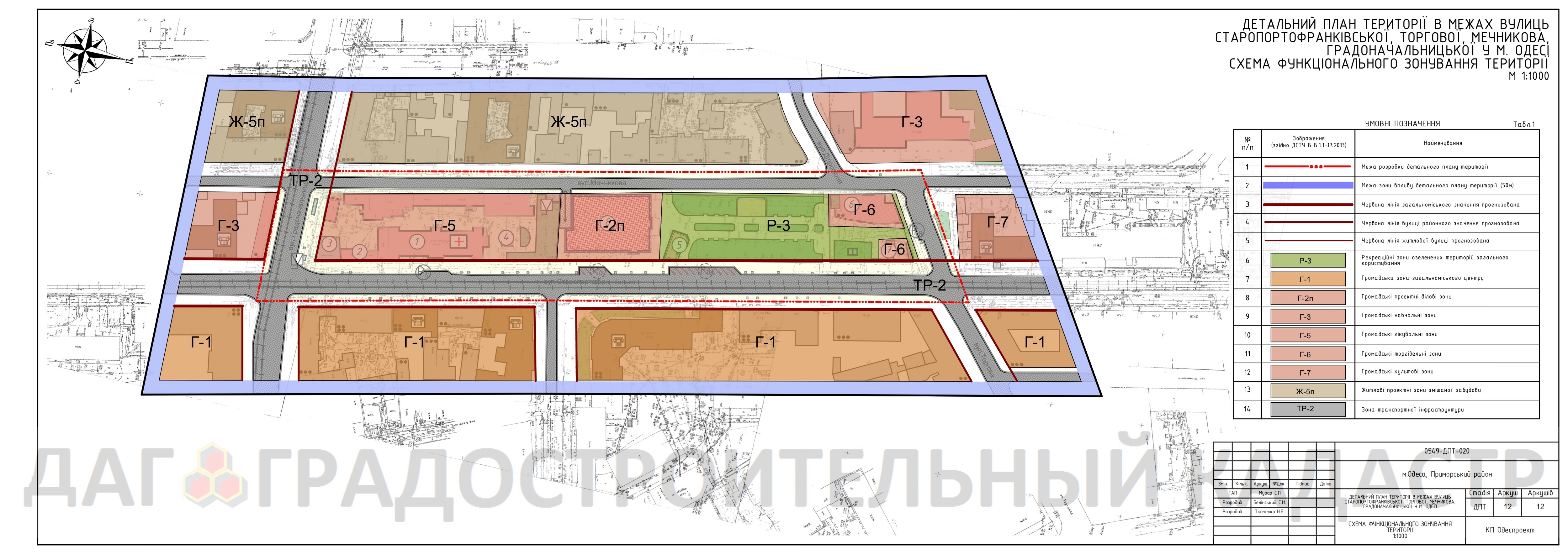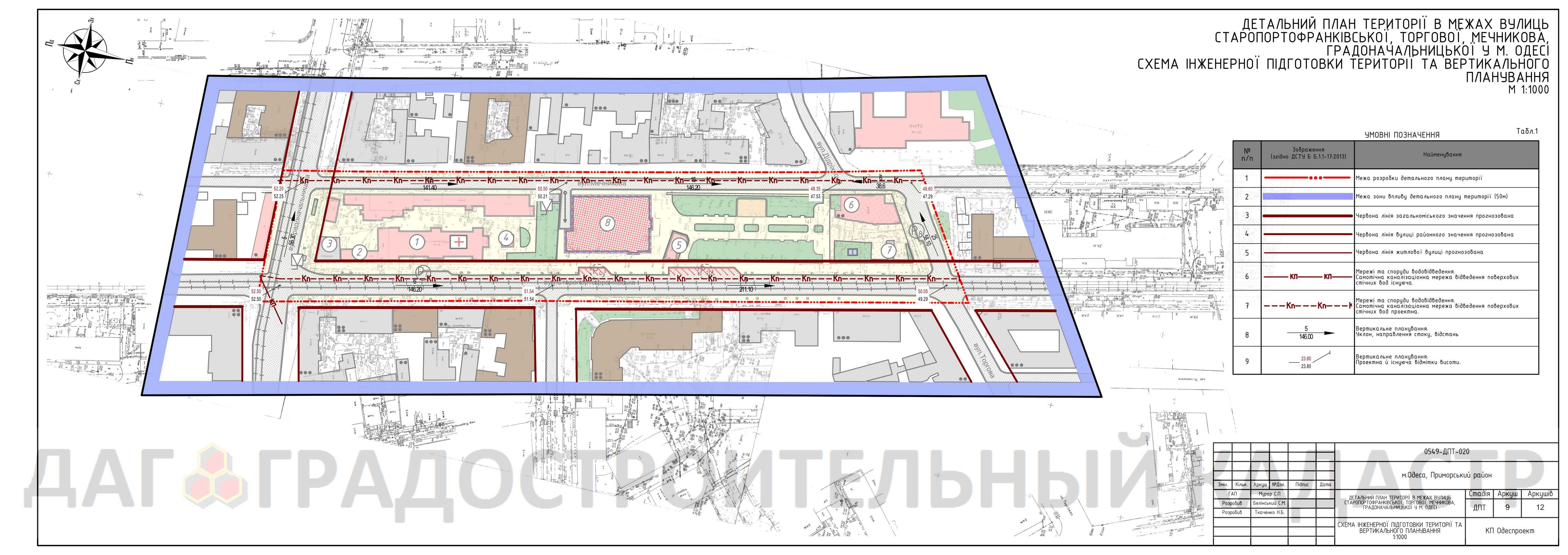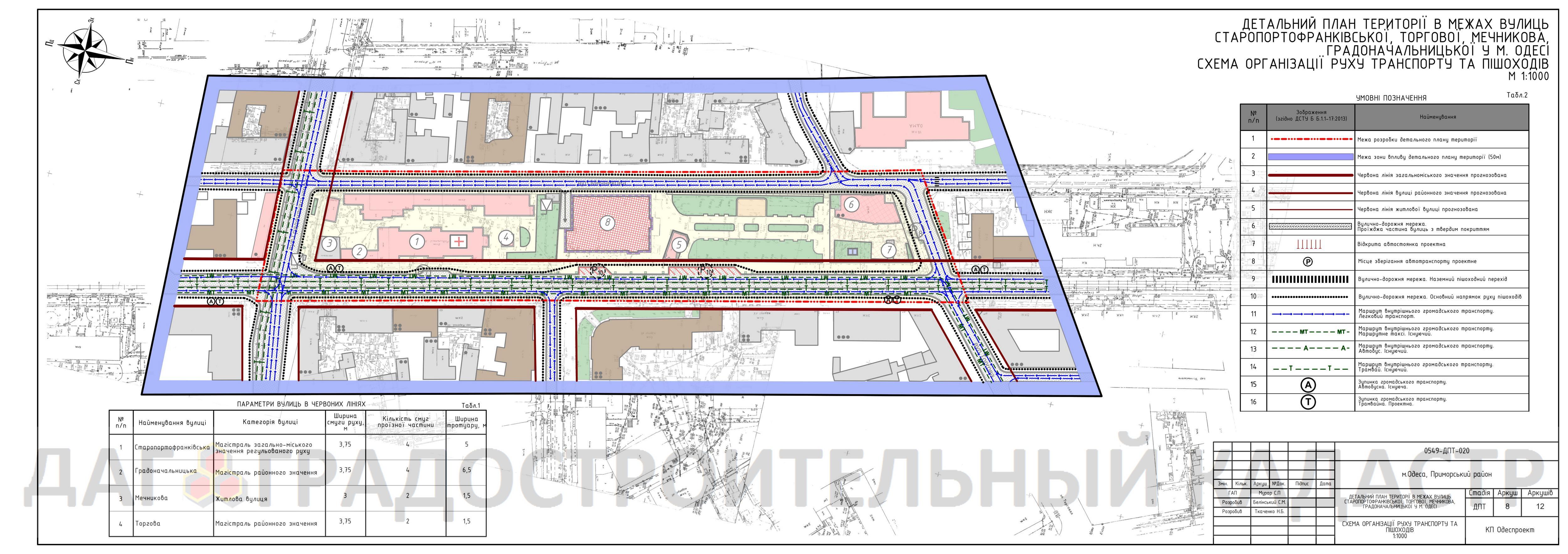 Проект детального плану території (далі - ДПТ) у межах: вулиці Старопортофранківська, вулиці Градоначальницька, вулиці Мечникова та вулиці Торгова у м. Одесі розроблений на підставі рішення Одеської міської ради № 5641-VII від 06.02.2020 р., у відповідності з завданням на проектування, узгодженим замовником та погодженим інвестором.