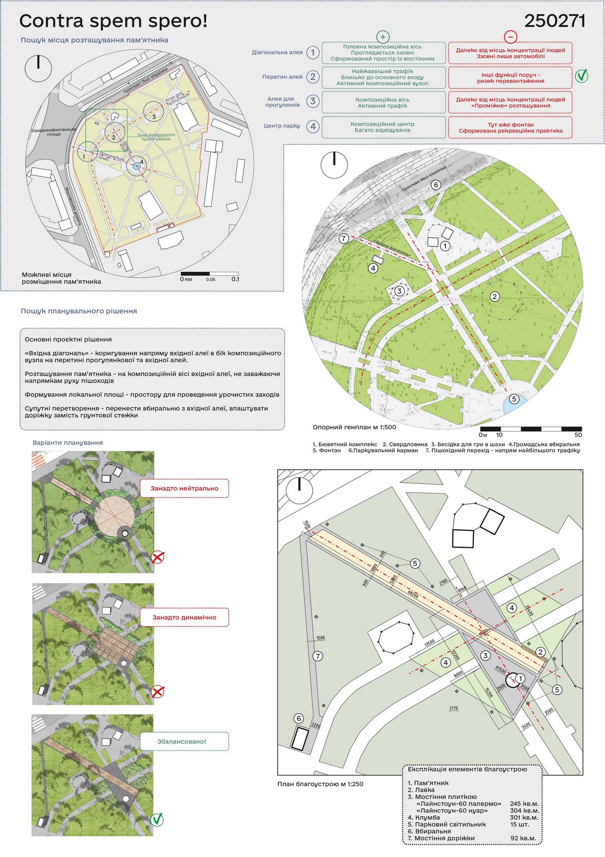 Пропозиції надійшли від учасників замовленого конкурсу: Слюсаренко С.В., Головченко Н.Ю., Беліков Ю.В., а також, додатково, ініціативні проектні пропозиції надала студентка IV курсу Архітектурно-художнього інституту Одеської державної академії будівництва та архітектури Галапчук А.В.
